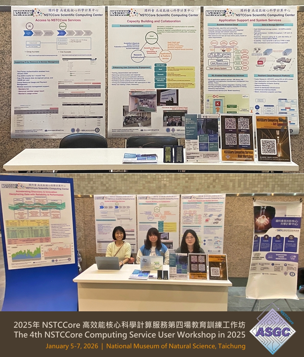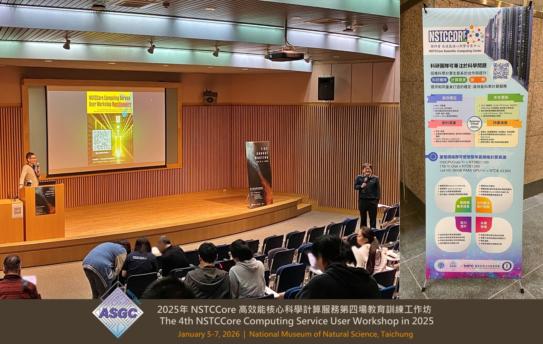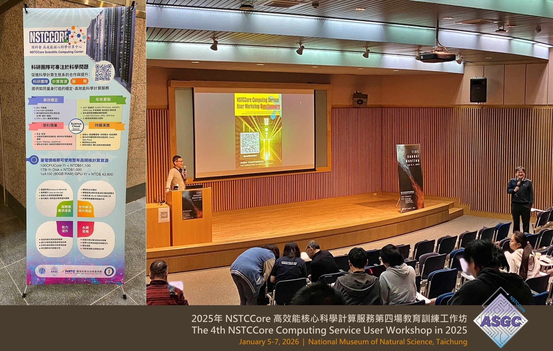 The fourth NSTCCore High-Performance Computing (HPC) User Training Workshop of 2025 will be held on Wednesday, January 7, 2026, at National Museum of Natural Science, Taichung. This workshop is supported by the NSTCCore HPC Service Project and organized by the Academia Sinica Grid Computing Centre (ASGC), with strong collaboration from the Taiwan Instrumentation and Detector Consortium (TIDC).